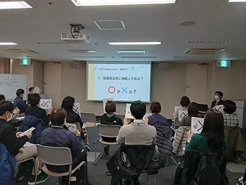 利用者さんの終活について考えるというテーマで相続や成年後見制度について学んでもらう機会となりました。〇×クイズをして理解度を深めてもらえたのではないかと思います。 - 交野市ゆうゆうセンターで研修会を開催しました
